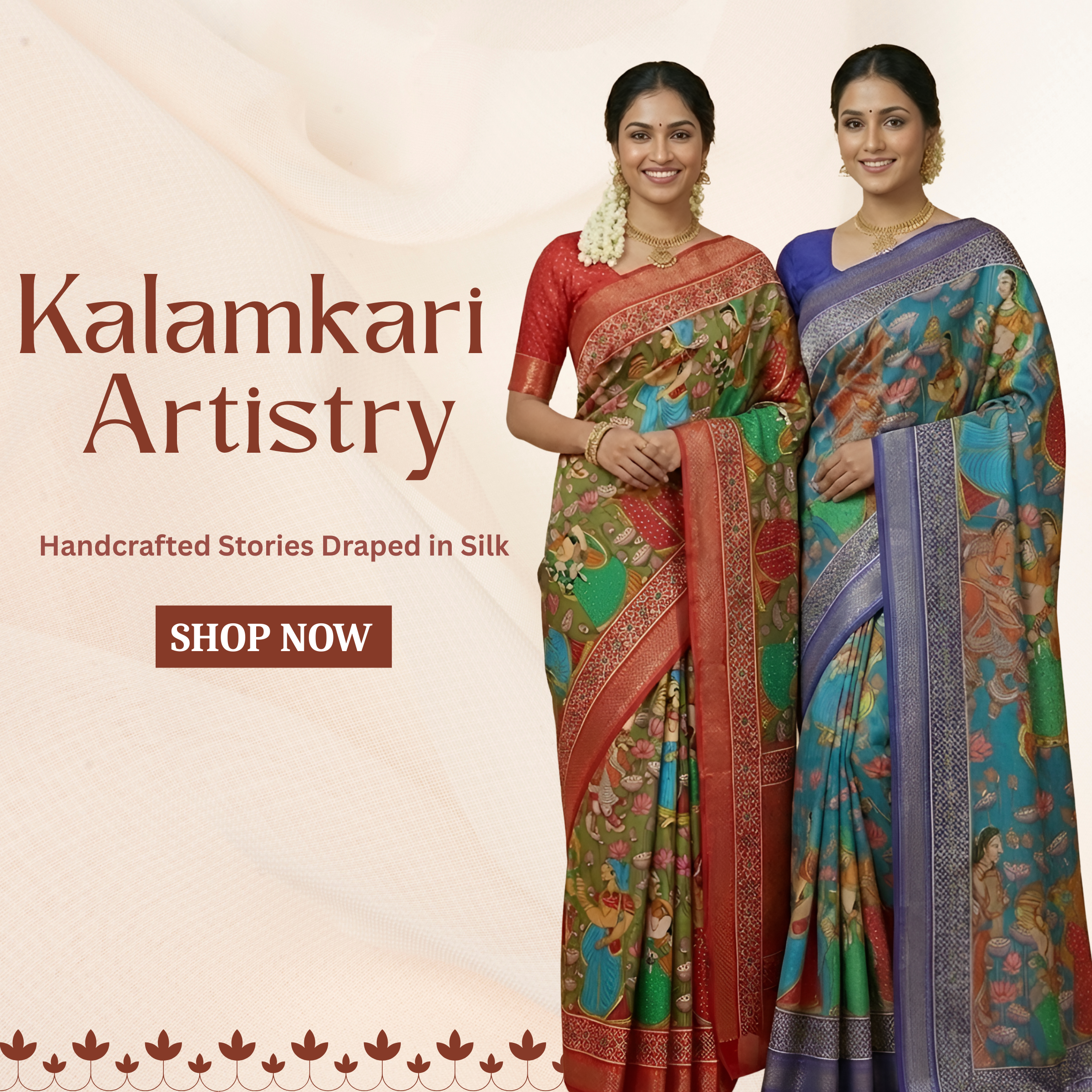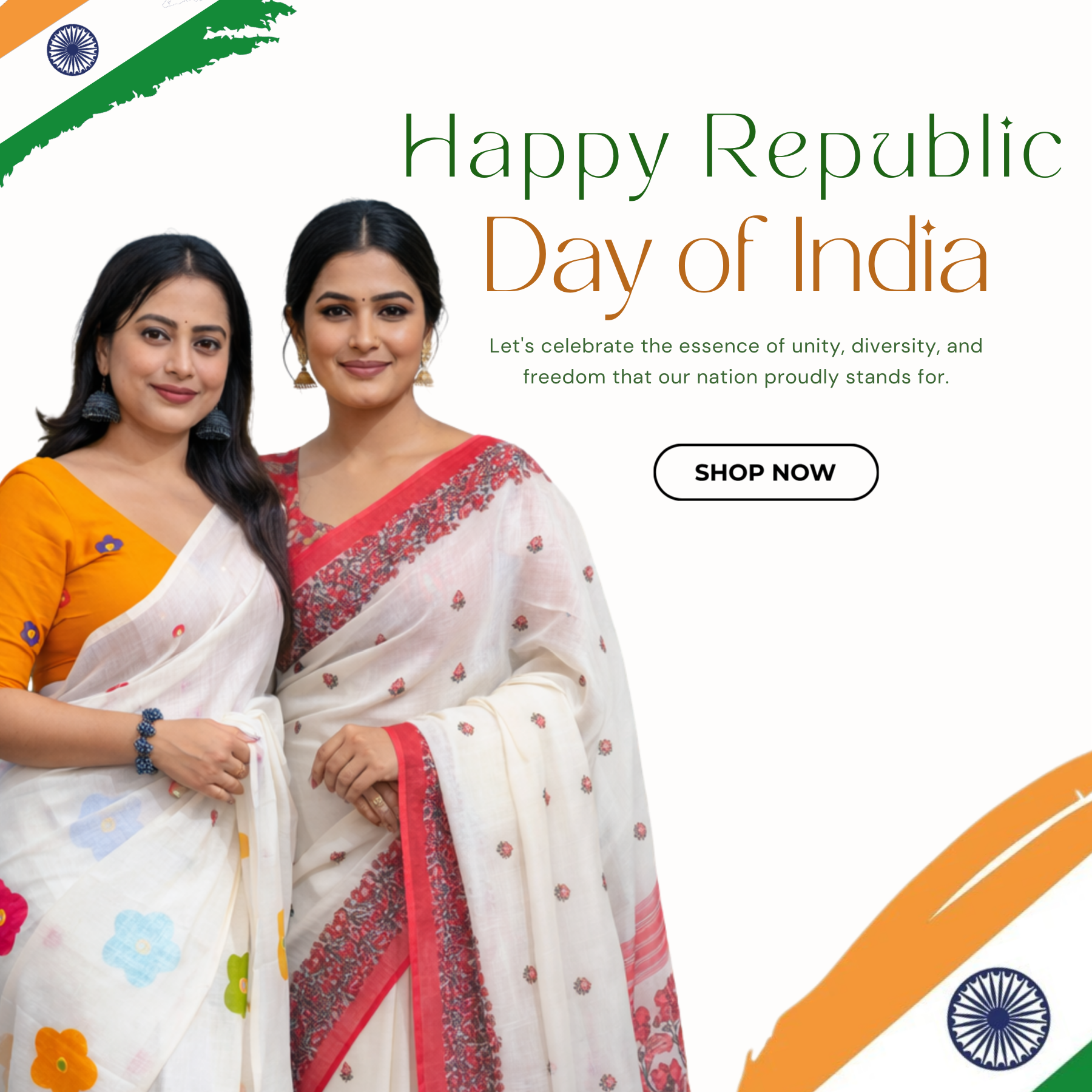 Red-White Durga Pooja Digital Printed Soft Linen Cotton Saree – Design 3: Swastik with Floral Border