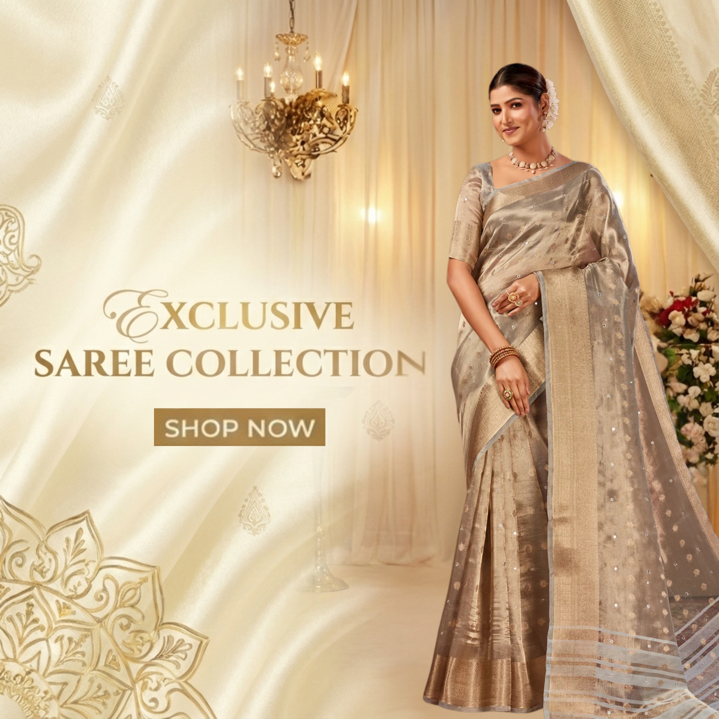 Gold Soft Tissue Silk Saree with Mirror Work
